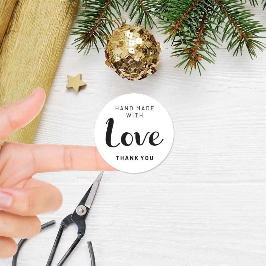 Hand Made With Love Sticker / Etiket - 9 Adet