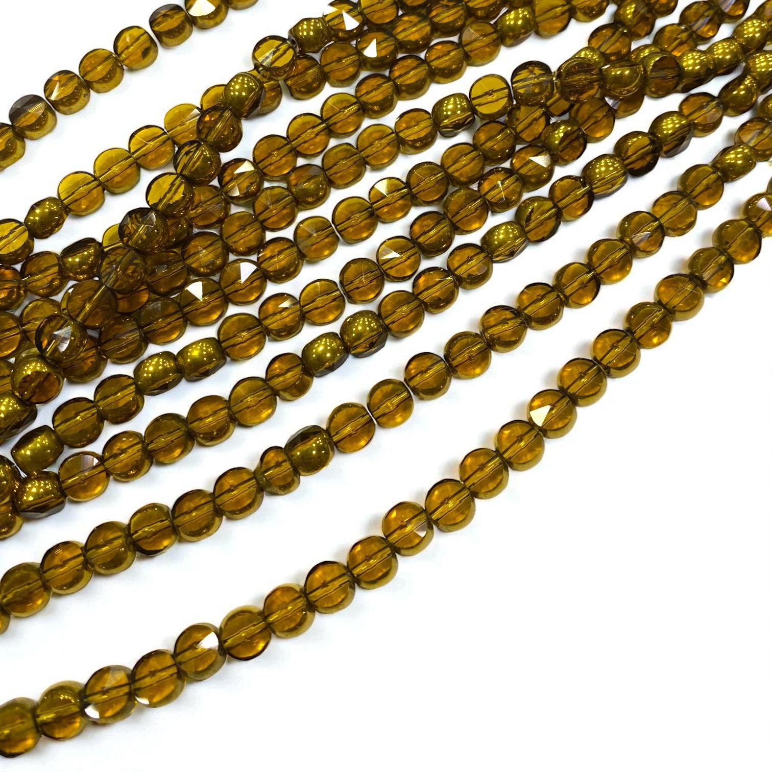 Yaldızlı Çek Cam Boncuk Yuvarlak 5 MM Camel